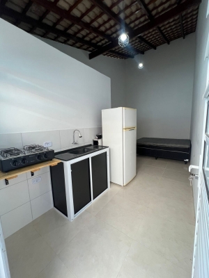 Studio com banheiro privativo, cozinha, área de lavanderia individual disponível com vaga para moto apenas, para locação definitiva na Praia das Palmeiras
